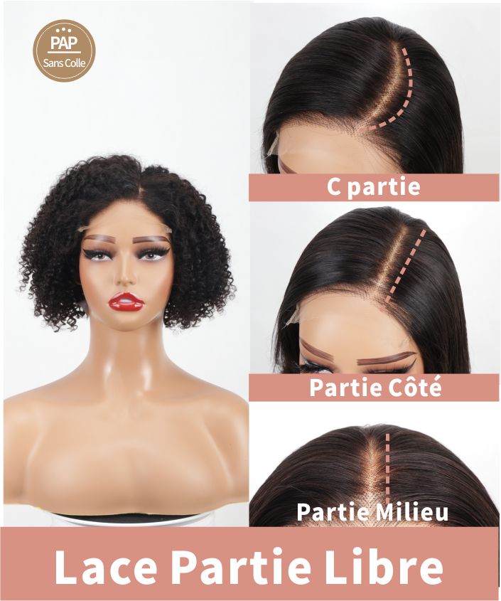 Prêt-à-Partir Sans Colle Bob Premium Cheveux Humains Kinky Curly HD Lace 5x5 Perruque